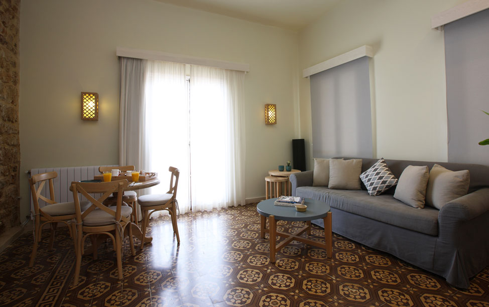The Dar Alma Boutique Hotel suites and rooms are beautifully adorned with old Lebanese tiles in earthy colors and eye-catching designs, boast comfortable beds fitted with luxurious 300 thread count, 100% cotton sheets, fluffy feather pillows, modern amenities side-by-side with traditional elements.
