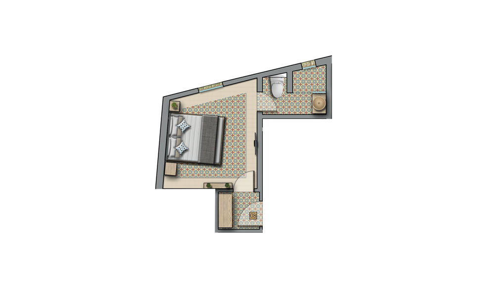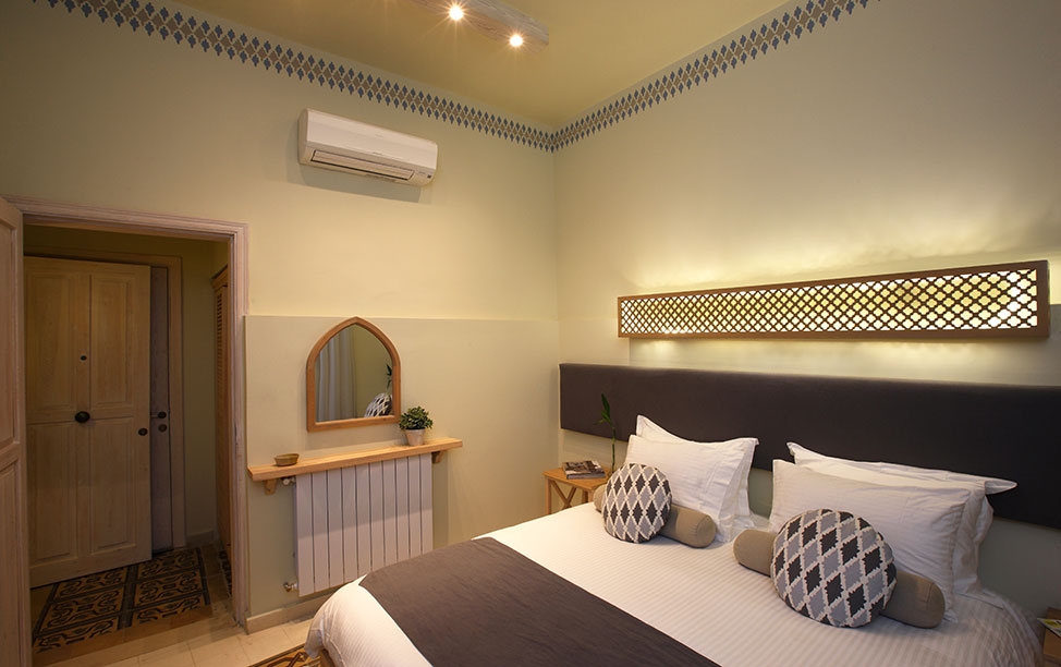 The Dar Alma Boutique Hotel suites and rooms are beautifully adorned with old Lebanese tiles in earthy colors and eye-catching designs, boast comfortable beds fitted with luxurious 300 thread count, 100% cotton sheets, fluffy feather pillows, modern amenities side-by-side with traditional elements.
