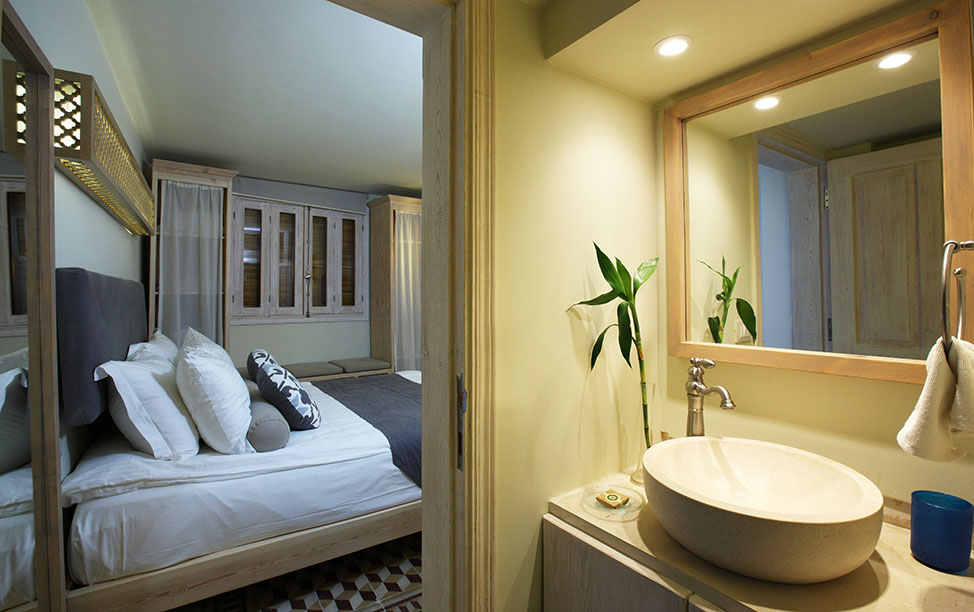 The Dar Alma Boutique Hotel suites and rooms are beautifully adorned with old Lebanese tiles in earthy colors and eye-catching designs, boast comfortable beds fitted with luxurious 300 thread count, 100% cotton sheets, fluffy feather pillows, modern amenities side-by-side with traditional elements.