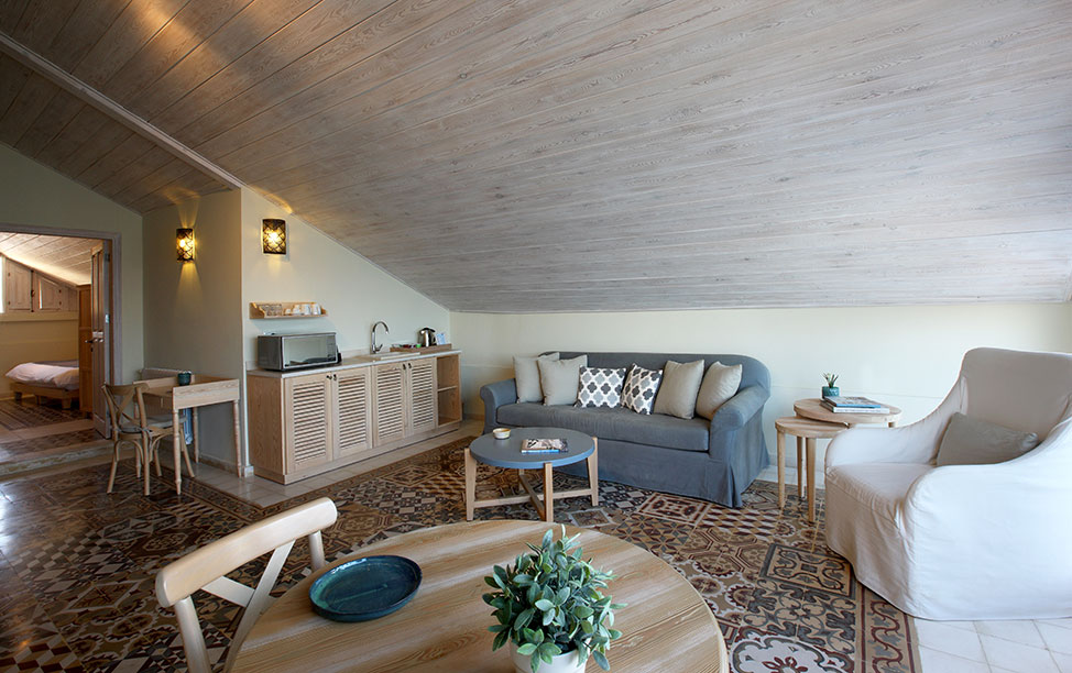 The Dar Alma Boutique Hotel suites and rooms are beautifully adorned with old Lebanese tiles in earthy colors and eye-catching designs, boast comfortable beds fitted with luxurious 300 thread count, 100% cotton sheets, fluffy feather pillows, modern amenities side-by-side with traditional elements.