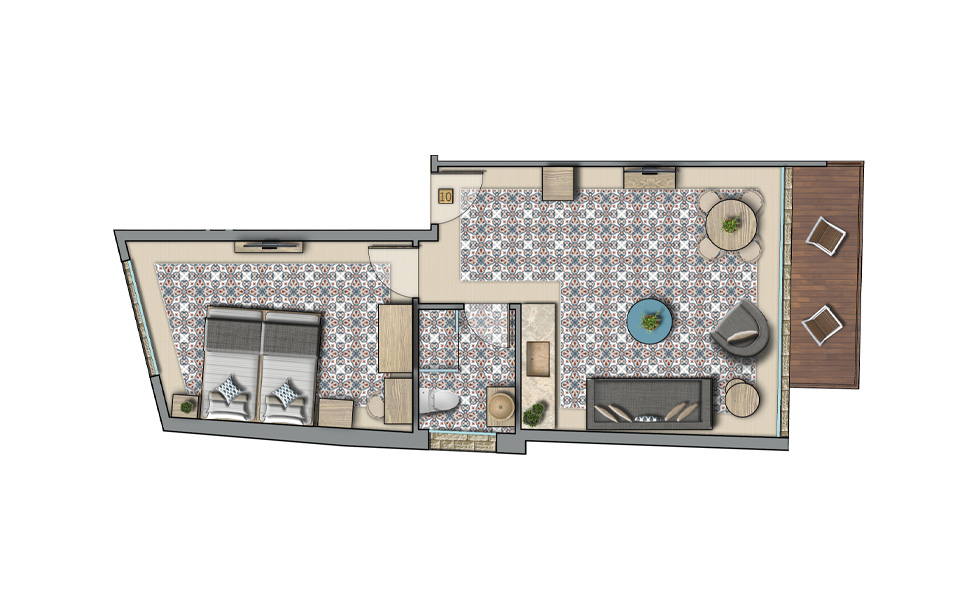 The Dar Alma Boutique Hotel suites and rooms are beautifully adorned with old Lebanese tiles in earthy colors and eye-catching designs, boast comfortable beds fitted with luxurious 300 thread count, 100% cotton sheets, fluffy feather pillows, modern amenities side-by-side with traditional elements.